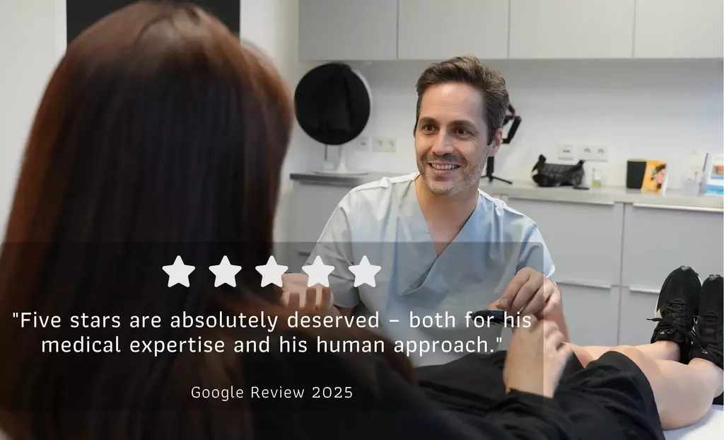 Vascular surgeon Dr Said Al-Jundi has specialized in the treatment of varicose veins and spider veins and has already treated over 1,000 satisfied patients in the last 16 years. He always relies on modern technologies to achieve the desired result for you as a patient as gently as possible. Thanks to his many years of experience as a vascular surgeon, including at the Petrus Hospital in Wuppertal, he is able to optimally combine the medical aspects of varicose vein/broom vein treatment with the aesthetic wishes of his patients. While some inexperienced doctors only pay attention to aesthetics or only to medical necessity, vascular surgeon Al-Jundi always tries to combine both worlds so that you as a patient are ultimately as satisfied as possible with the result and it is also long-lasting.